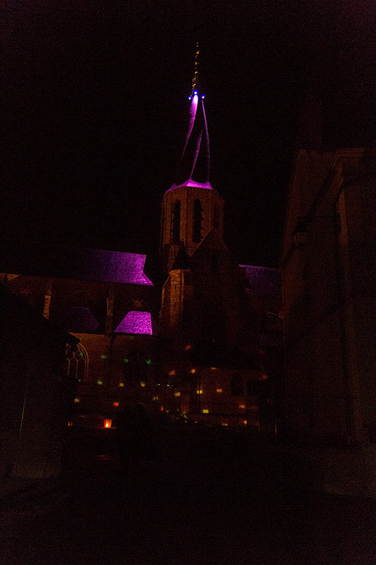 - une déambulation nocturne, où les spectateurs ont découvert le centre historique de Puiseaux magnifié par la lumière et le son
